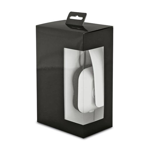 Fone de ouvido dobráveis e ajustáveis em ABS. Cabo de 1,45 m com ligação stereo de 3,5 mm. Fornecido em caixa presente.