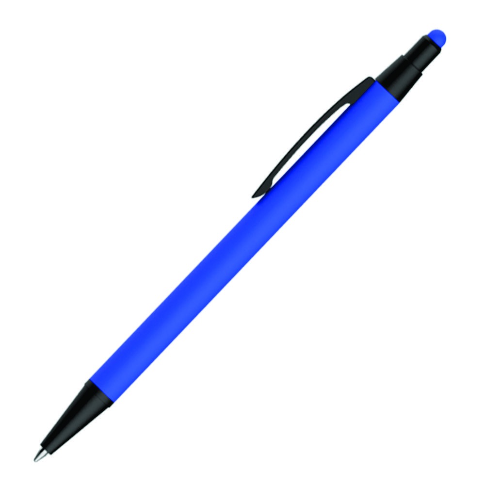 Caneta esferográfica em metal Emborrachada com ponta touch escrita em azul. NAO ACEITA GRAVAÇÃO A LASER.
