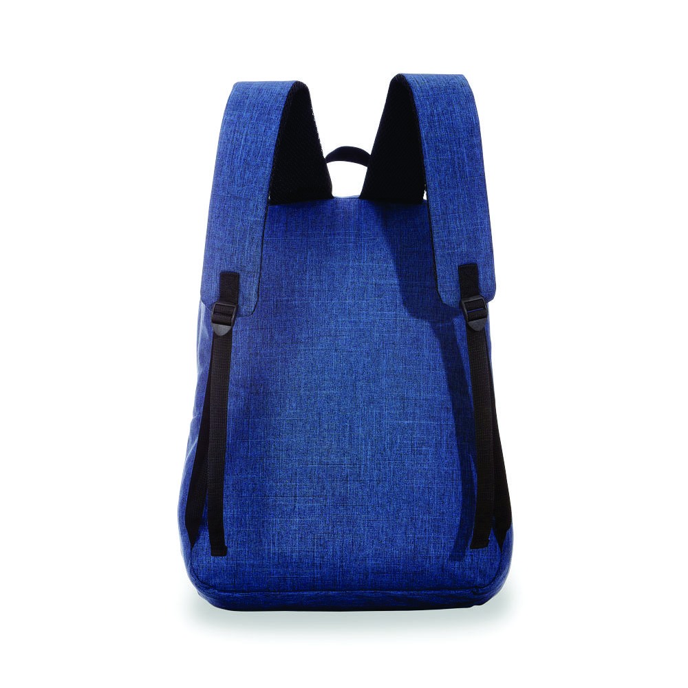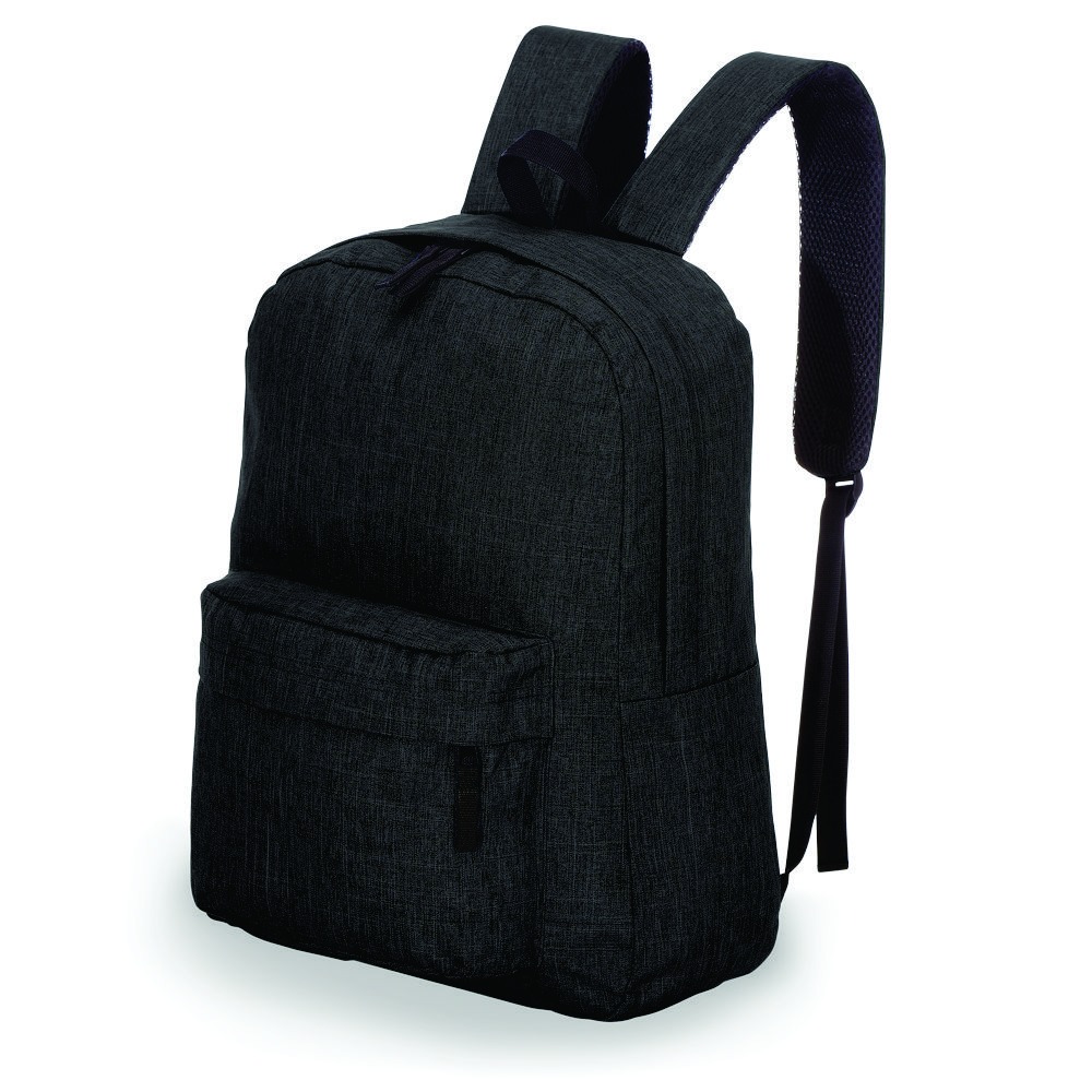 Mochila em tecido polyester, Ziper protegido, Bolso frontal com ziper.
