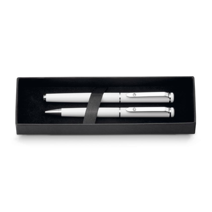 Conjunto de roller e esferográfica. Metal. Em estojo almofadado.