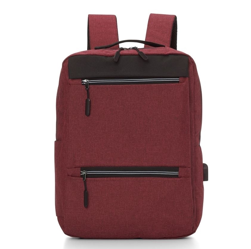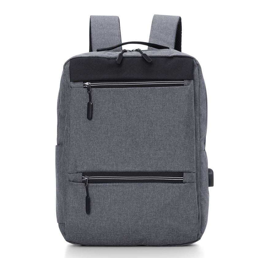 Mochila confeccionada em nylon com compartimento para notebook até 15,6 polegadas. Contém compartimento grande com divisórias para documentos, eletrônicos e caneta, dois compartimentos frontais com abertura horizontal, bolso lateral e adaptador USB externo com cabo acoplado, permitindo a conexão de um carregador portátil de dentro da mochila e transferência da carga para o lado externo, ocultando o carregador e viabilizando a utilização do celular durante o processo. Contém zíperes com pegadores plásticos, alça de mão em nylon e alças para as costas ajustáveis com revestimento espumado antitranspirante.