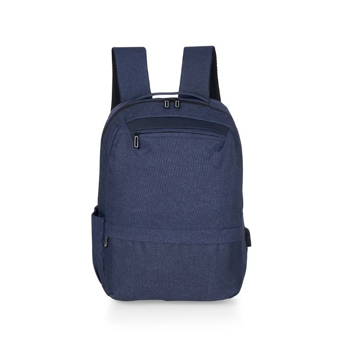 Mochila confeccionada em nylon com compartimento para notebook até 15,6 polegadas. Contém dois compartimentos frontais com abertura horizontal, bolso lateral e adaptador USB externo com cabo acoplado, permitindo a conexão de um carregador portátil de dentro da mochila e transferência da carga para o lado externo, ocultando o carregador e viabilizando a utilização do celular durante o processo. Contém zíperes com pegadores metálicos, alça de mão em nylon e alças para as costas ajustáveis com revestimento espumado antitranspirante.