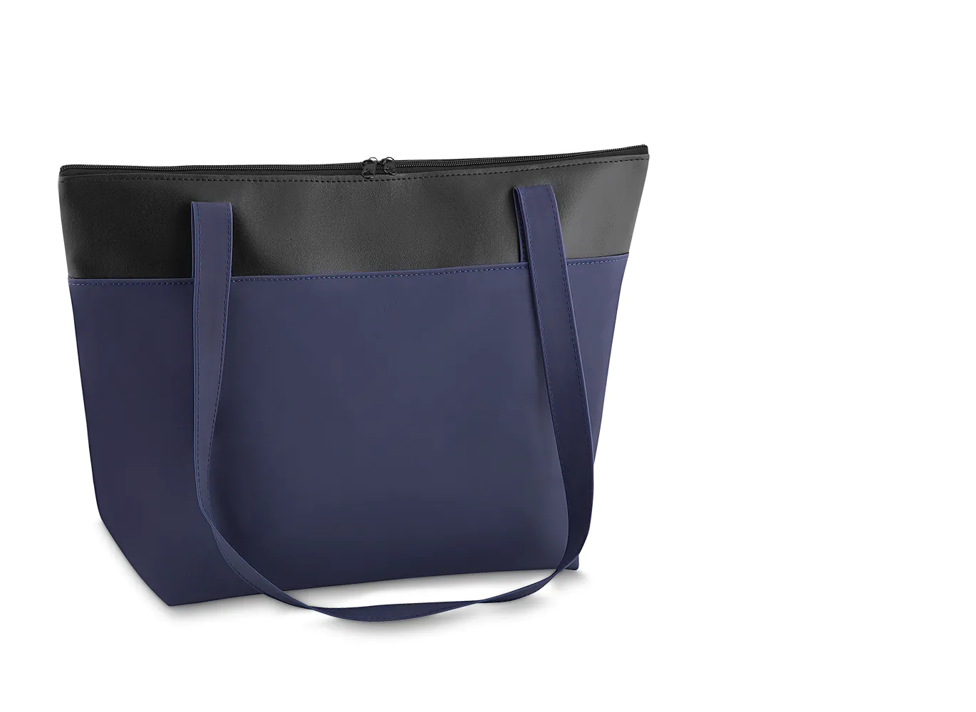 Bolsa térmica conservadora, capacidade 6,5 litros, nylon 420 e detalhe em couro sintético com alça de ombro; Gravação frontal em serigrafia.