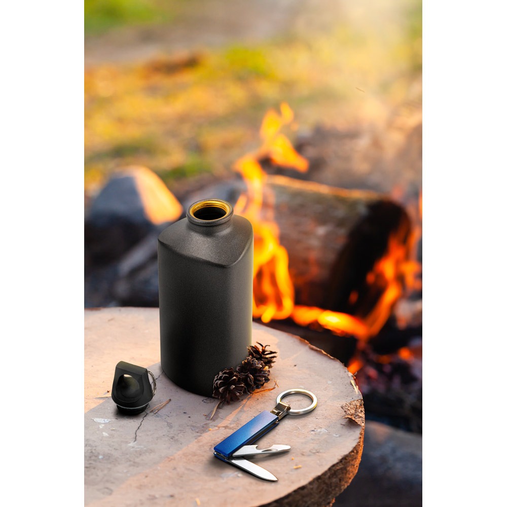 Chaveiro multifunções em metal.