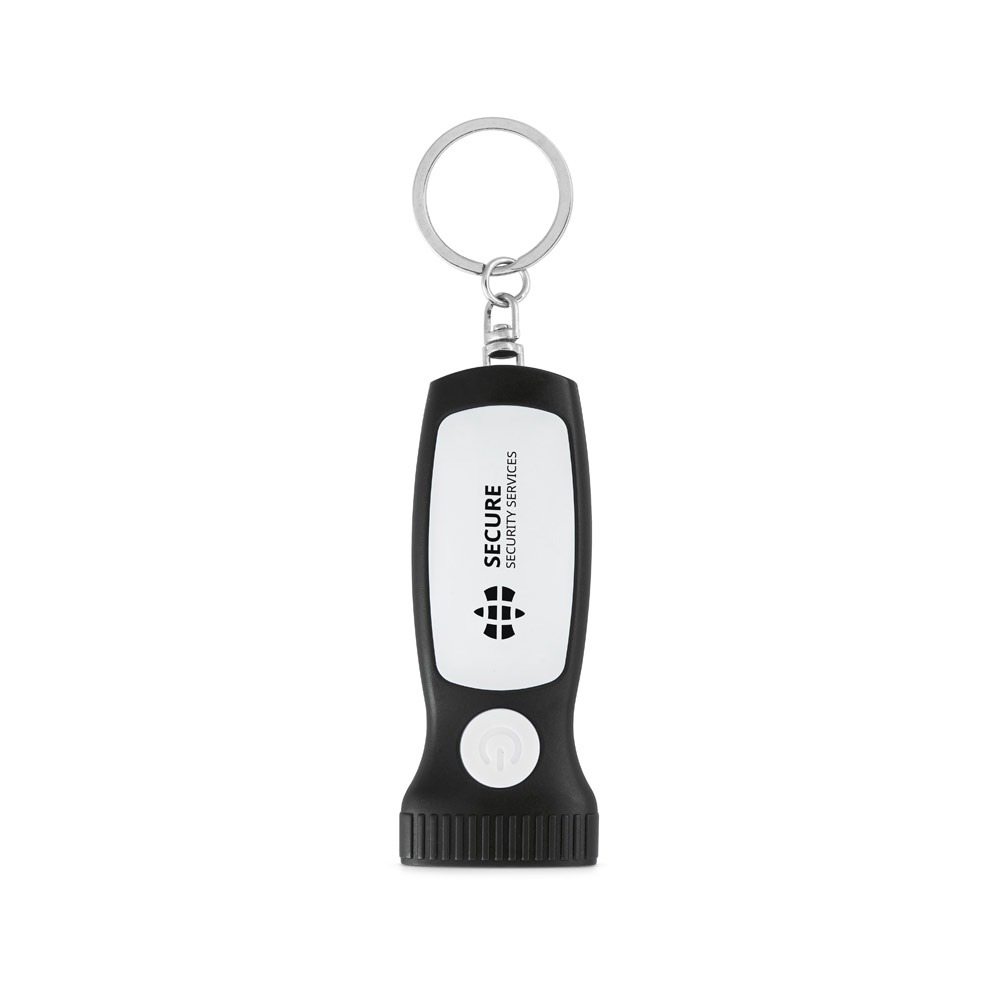 Chaveiro em ABS com luz LED. Incluso 3 pilhas AG10.