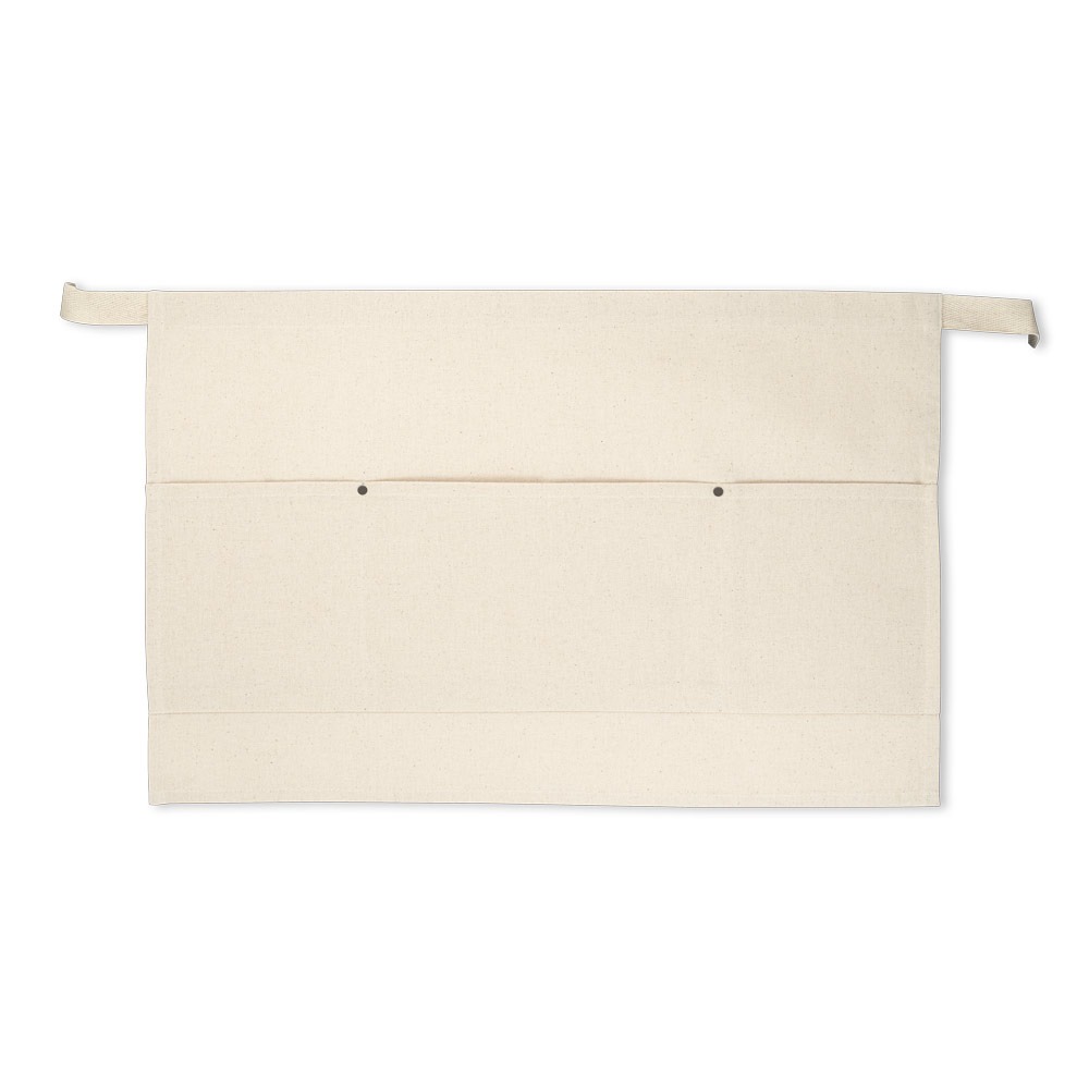 Avental multiusos em lona de algodão (260 g/m²) com 3 bolsos frontais e fita para amarrar à cintura.