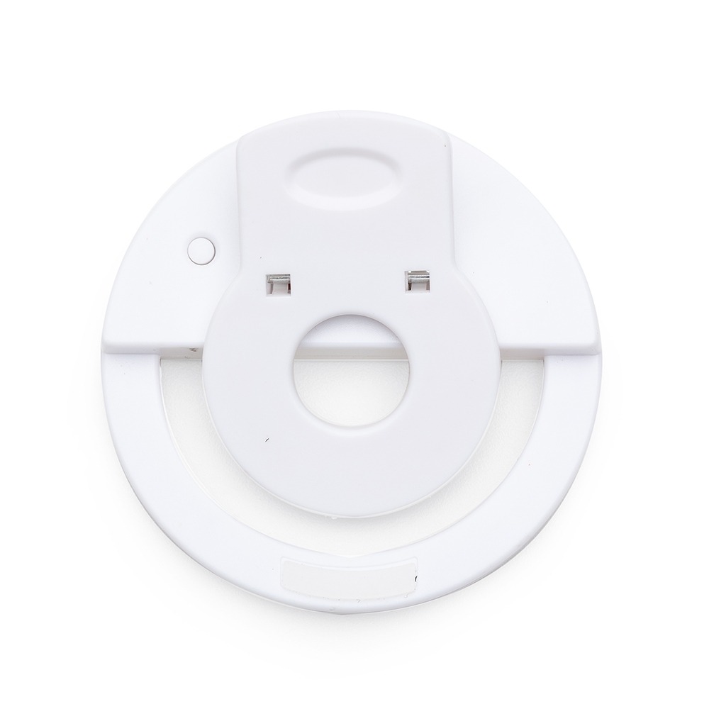 Anel de iluminação para celular, utilizado para fotos em formato selfie. “Ring light” plástico no formato “presilha” para encaixe, possui três estágios de iluminação acionados pelo botão superior. Acompanha cabo USB para carregamento.