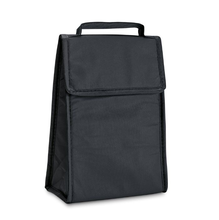 Bolsa térmica dobrável. Non-woven: 80 g/m². Fecha com velcro. Fornecida desdobrada. Capacidade até 3 litros. Food grade.