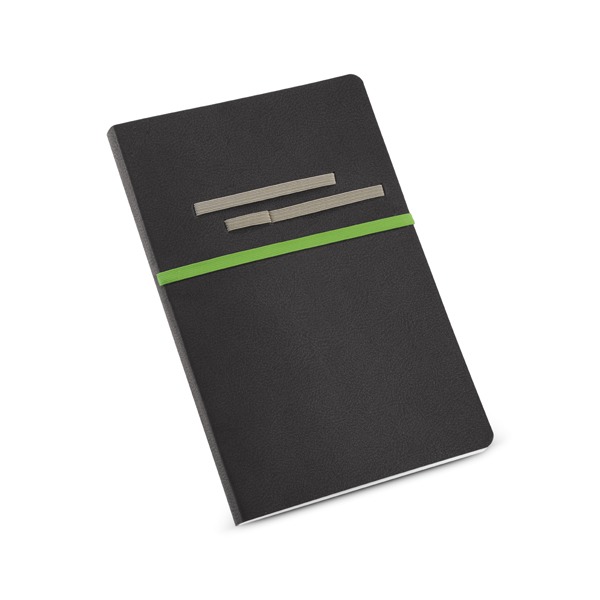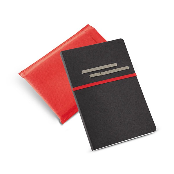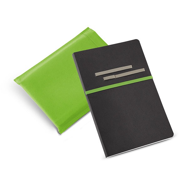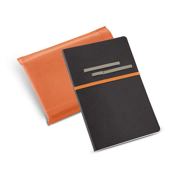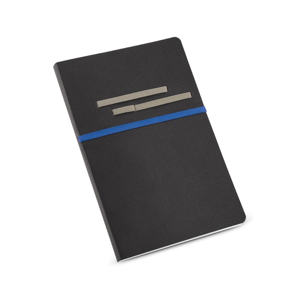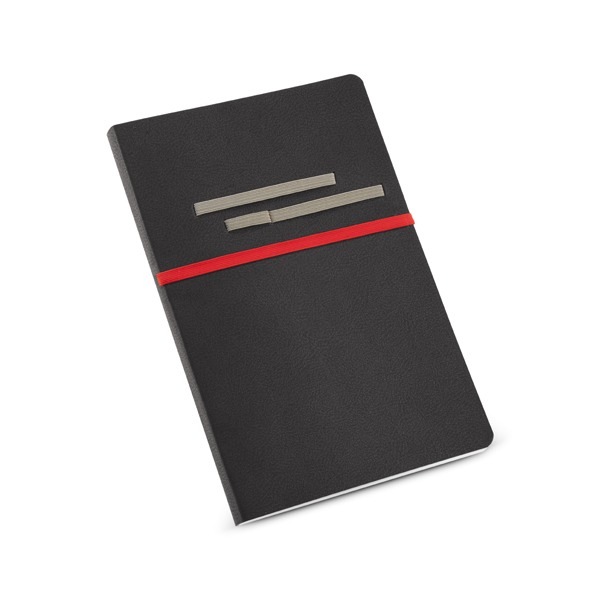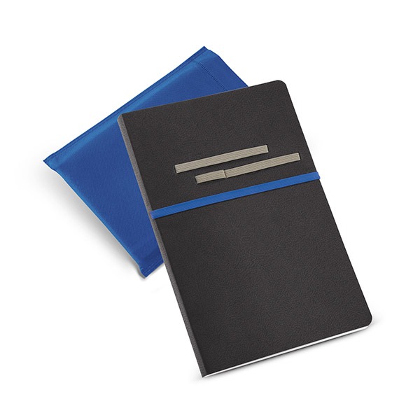 Caderno. C. sintético. Com 96 folhas não pautadas. Fornecido em embalagem de non-woven. Esferográfica não inclusa.