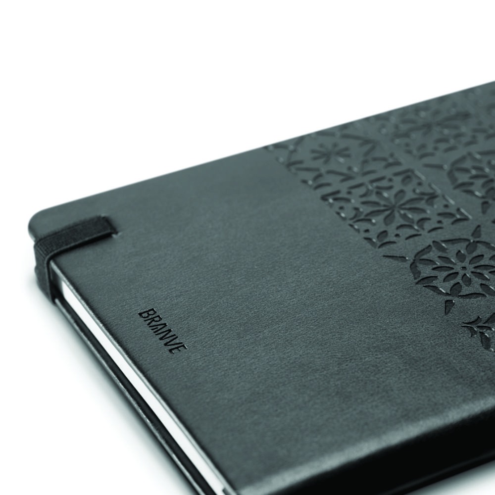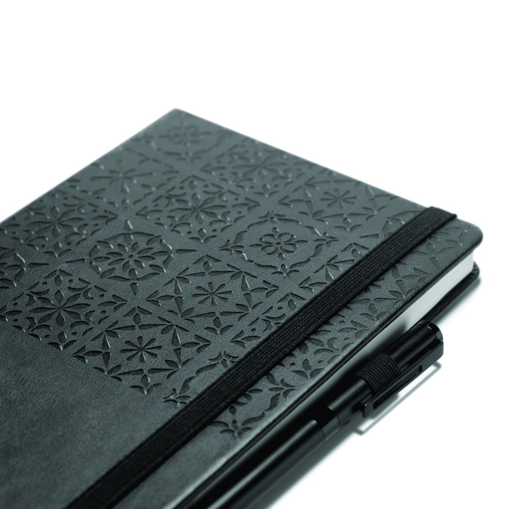 O TILES é um caderno A5 com capa rígida em imitação de pele com 128 folhas pautadas no seu interior. Todo este bloco foi idealizado com base em elementos culturais, neste caso concreto os azulejos portugueses. A banda elástica que permite fechar o caderno, o marcador de livros e o suporte de esferográfica (não inclusa), reforçam a utilidade deste caderno. Mais do que um caderno, é um suporte para comunicação de emoções. Algo muito pessoal e único. Fornecido em caixa presente.