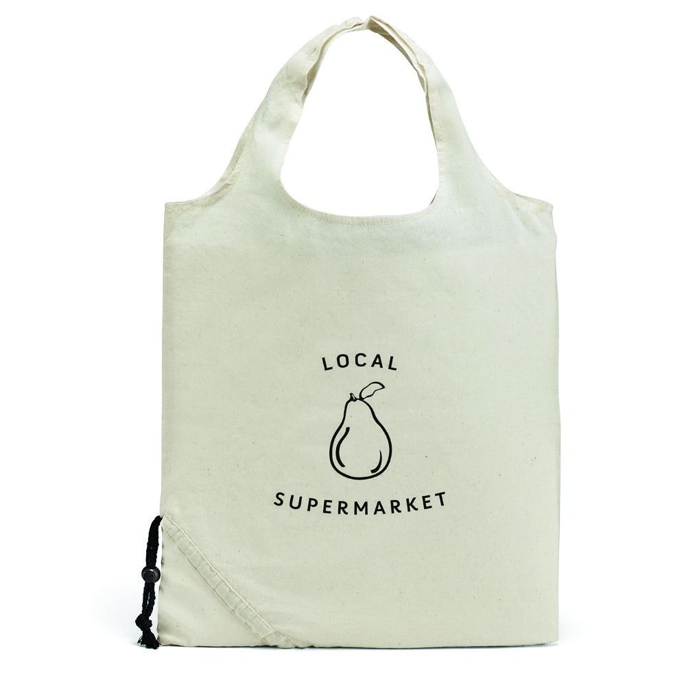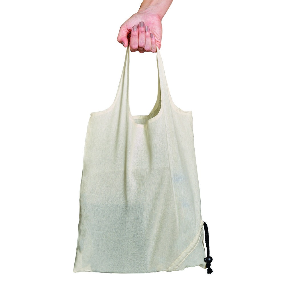 Sacola dobrável. 100% algodão: 100 g/m². Fornecida desdobrada.