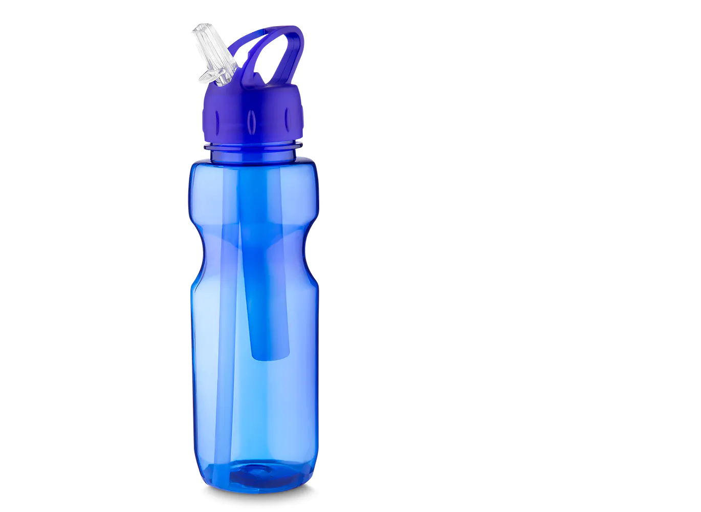 Garrafa plástica 700 ml com porta gelo e canudo, plástico utilizado AS (estireno de acrilonitrilo).