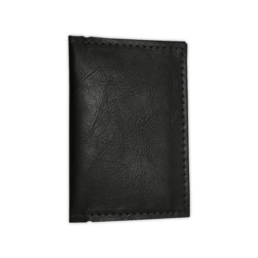 Porta cartão em couro sintético com quatro divisórias e dois bolsos internos.
